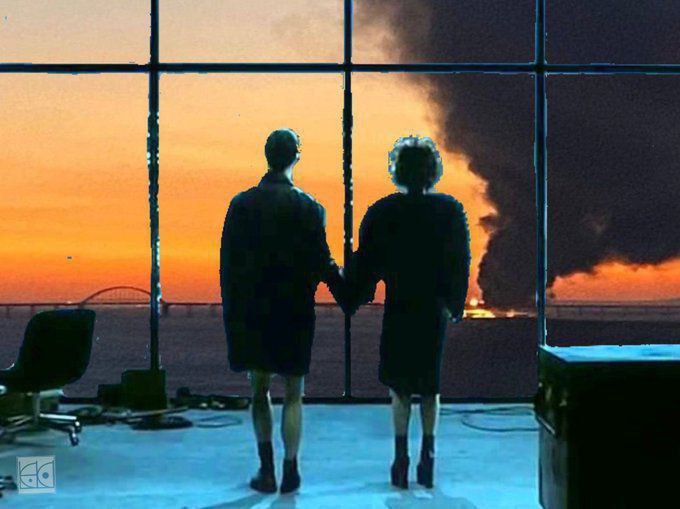 Предположительно грузовик, начиненный взрывчаткой, прошел слепой сонный контроль на въезде на мост и отправился в сторону Керчи. Вспышку и взрыв зафиксировали камеры. “Ускорить? Не, не надо” – я просмотрела трёх-секундный ролик не меньше пяти раз. Украинский задорный твиттер взорвался еще спустя час: “Да никто и не злорадствует. Просто сидим на кухне в 7:30 и пьем шампанское”.